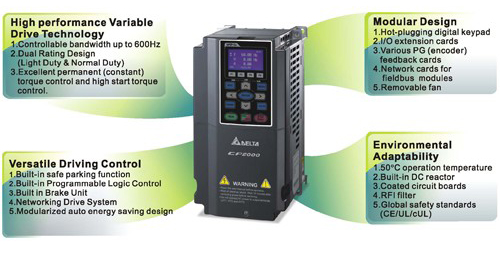 - With a built-in 10K steps Delta PLC allows user to execute distributional control and independent control when connecting to a network system. Delta CP2000 series drives provide you the intelligent control possibility beyond your imagination.