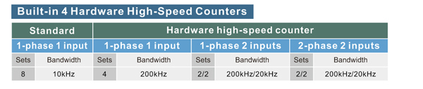 High-speed pulse output: 4 sets of 200kHz pulse output (DVP40/48/64/80EH00T3).