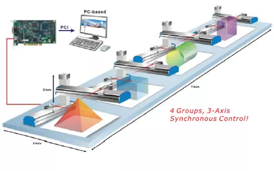 Delta High-Speed Motion Control System is a high speed and real time communication system, capable of controlling up to 12 servo system units within 1ms simultaneously. It can accept double precision floating point values 64-bits wide and provide up to 1,280,000 pulse/rev resolution so the servo system can make accurate calculations and provide operation flexibility. 35 homing modes are provided. 12 servo system units or 4 groups, 3-axis helical and linear interpolation or 6 groups, 2-axis linear and arc interpolation can be implemented synchronously. It also supports absolute commands, incremental commands and T-curve / S-curve velocity profiles, built-in position, speed and torque control modes for different uses. Simply by connecting to servo motors, linear motors, digital inputs and outputs (DI/DO), analog inputs and outputs (AI/AO) and other control devices such as stepping motors and manual pulse generator (MPG), enabling fast and cost-effective communication and control is easy. is the best integrated platform for multi-axis and synchronous motion control in a wide range of machine tools and industrial applications. It is also the ultimate solution that provides effortless wiring, enhanced stability, flexible extension ability and versatile operation for industry upgrading and adding value to the products.