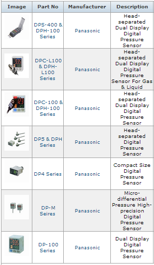 Pressure Sensors from Panasonic offer self contained and separate head types for maximum versatility in your pressure sensing applications.All series' are available in positive pressure, vacuum, and compound pressure ranges as well as multiple port size and output options. Explore the models listed below to find the best pressure and flow sensors for your needs.